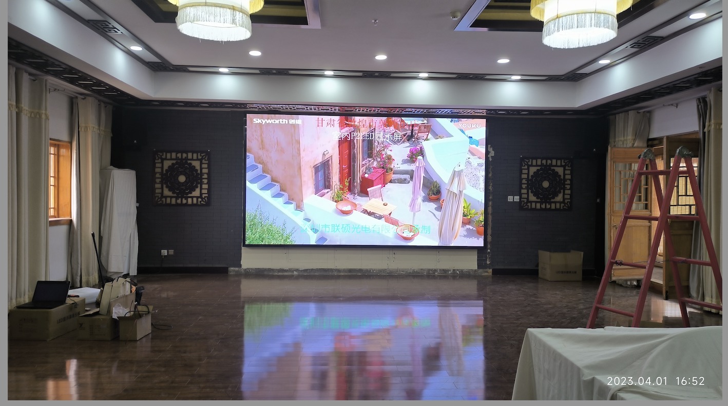 良好的品質(zhì)以及快速的售后服務(wù)讓我們?cè)倮m(xù)前緣,此次為會(huì)議廳安裝2塊高清LSTV-P2.0Pro全彩電子屏,我們一起來(lái)看現(xiàn)場(chǎng)發(fā)回點(diǎn)亮實(shí)圖。