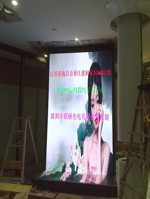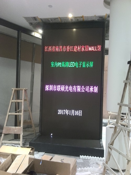 ? ?近日,聯(lián)碩光電承建的南昌市香江建材城室內(nèi)P2LED全彩顯示屏閃耀登場,下面我們一起來欣賞P2全彩顯示屏。