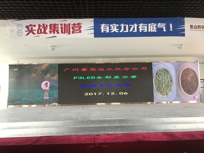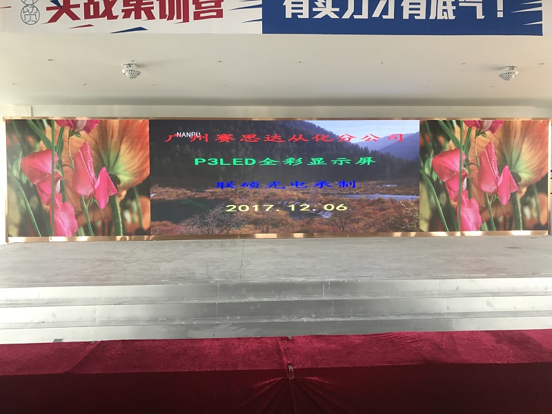 廣州賽思達烘焙設(shè)備公司大會堂P3室內(nèi)led全彩屏
